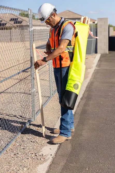 MADE FROM ROBUST CORDURA MATERIAL & REINFORCED BOTTOM END, THIS STAKE BAG FEATURES WIDE CARRY STRAP AND MULTIPLE SIDE STORAGE POCKETS.