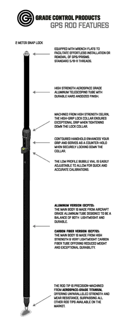 ULTRA LIGHT & STRONG 2 METER COLLAPSIBLE ROD WITH EASY GRIP THREADED PINCH COLLAR AND EASY VIEW BUBBLE LEVEL VIAL. INCLUDES HIGHLY DURABLE TITANIUM TIP. STANDARD 5/8β-11 THREADED MOUNT.Β NEW VERSION 2.0 (V2) IMPROVEMENTS GIVE YOU A MORE ROBUST, ACCURATE, & RELIABLE ROD. CHECK OUT THE βV2 IMPROVEMENTSβ SUMMARY IN THE PRODUCT IMAGES.